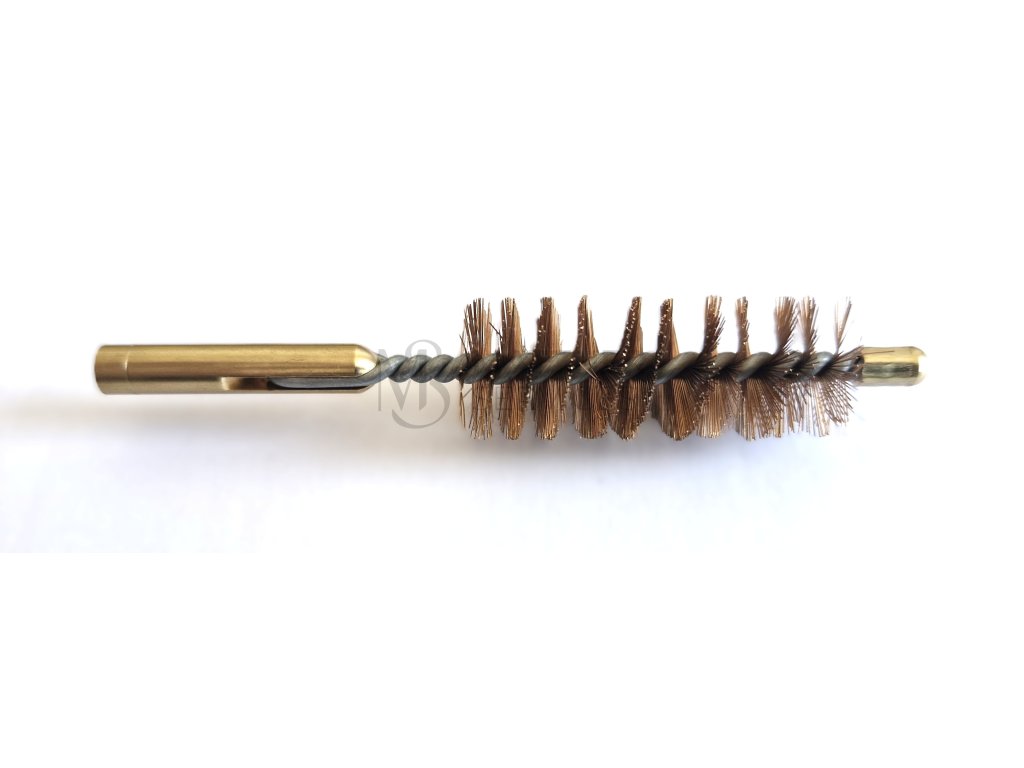 Bronzový kartáč / vytěrák pro perkusní zbraně je robustní nástroj určený k důkladnému čištění hlavní zbraní. Tento kartáč je vyroben z bronzu, což zajišťuje jeho pevnost a účinnost při odstraňování hrubých nečistot. Je ideální pro použití s černoprachými zbraněmi, především pro předovky (perkusní, křesadlové, doutnákové). Na rozdíl od levných běžných kartáčů pro zbraně, nejsou tyhle kartáče temované. To znamená, že nehrozí zaseknutí kartáče v hlavni při čištění! Nosný drát je protažen očkem přímo v mosazné základně. Kartáč je také opatřen krycím trnem, aby nedošlo k poškození dna hlavně a nebo dnového šroubu.