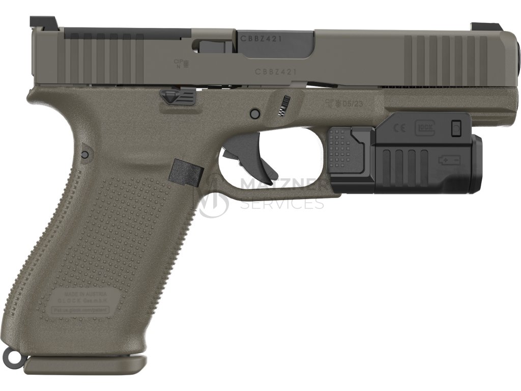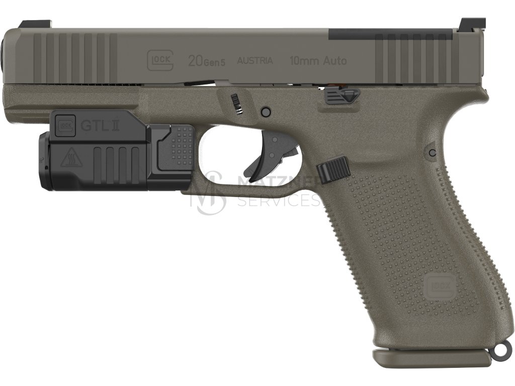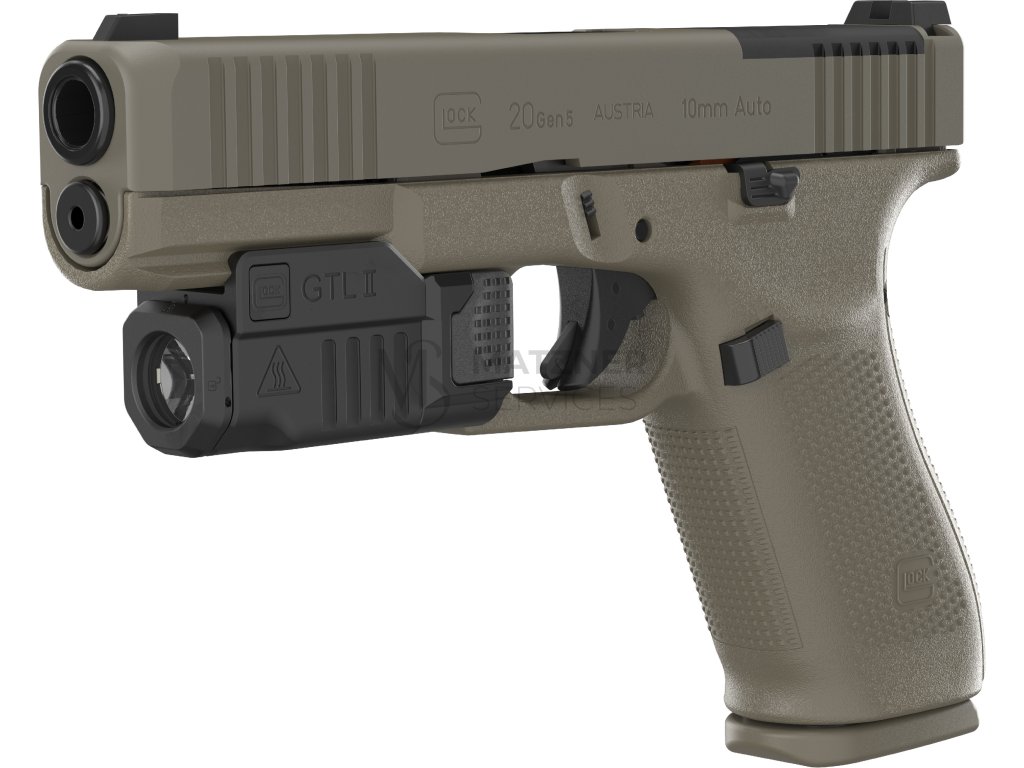 - taktická svítilna Glock GTL II (Glock Tactical Light) - LED technologie (600 lumenů), materiál: černě eloxovaný hliník, voděodolnost (do 20 m po dobu 2 hodin), jednoduchá výměna baterie bez nutnosti sejmutí z pistole, volitelný způsob ovládání vypínače (stiskem nebo zatlačením), vhodné pro pistole Glock (přesně přizpůsobena délce a šířce railu G19/G45)