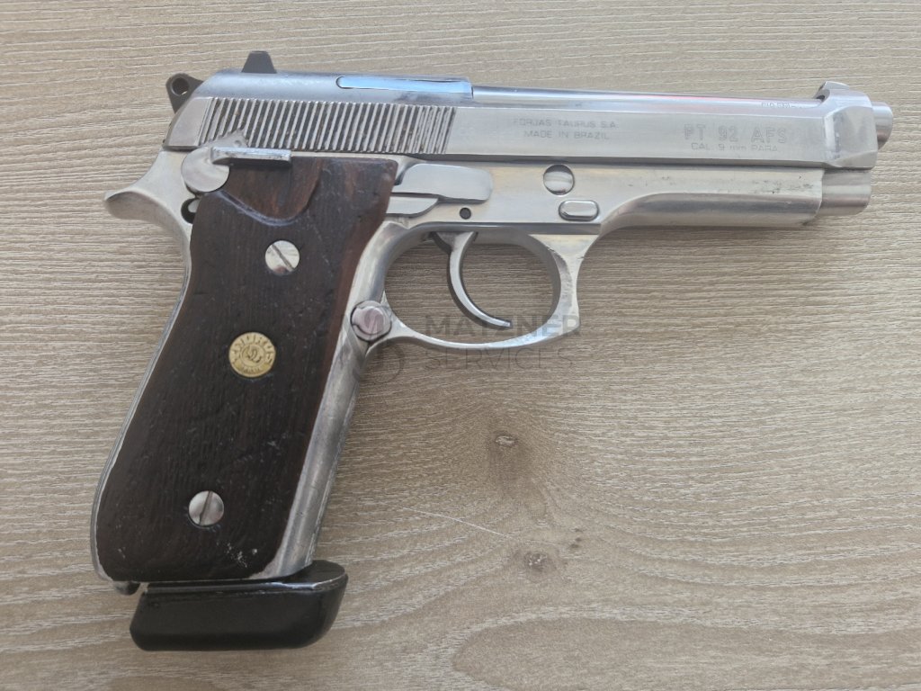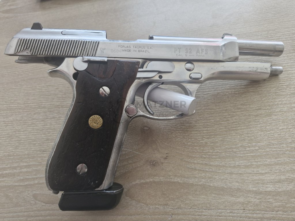 Model PT 92 vychází z původní licence Beretty 92. Vyrábí se v brazilské továrně, kterou Taurus odkoupil i s kompletním strojním vybavením a technickou dokumentací. Na rozdíl od italské předlohy má Taurus pojistku umístěnou na rámu, nikoliv na závěru. To umožňuje přirozenější ovládání palcem a bezpečné nošení v režimu „cocked and locked“ (nataženo a zajištěno). Provedení AFS (Alloy Frame Stainless) kombinuje lehký rám z hliníkové slitiny se závěrem a hlavní z nerezové oceli. Výsledkem je zbraň, která skvěle odolává korozi a i po letech vypadá reprezentativně.