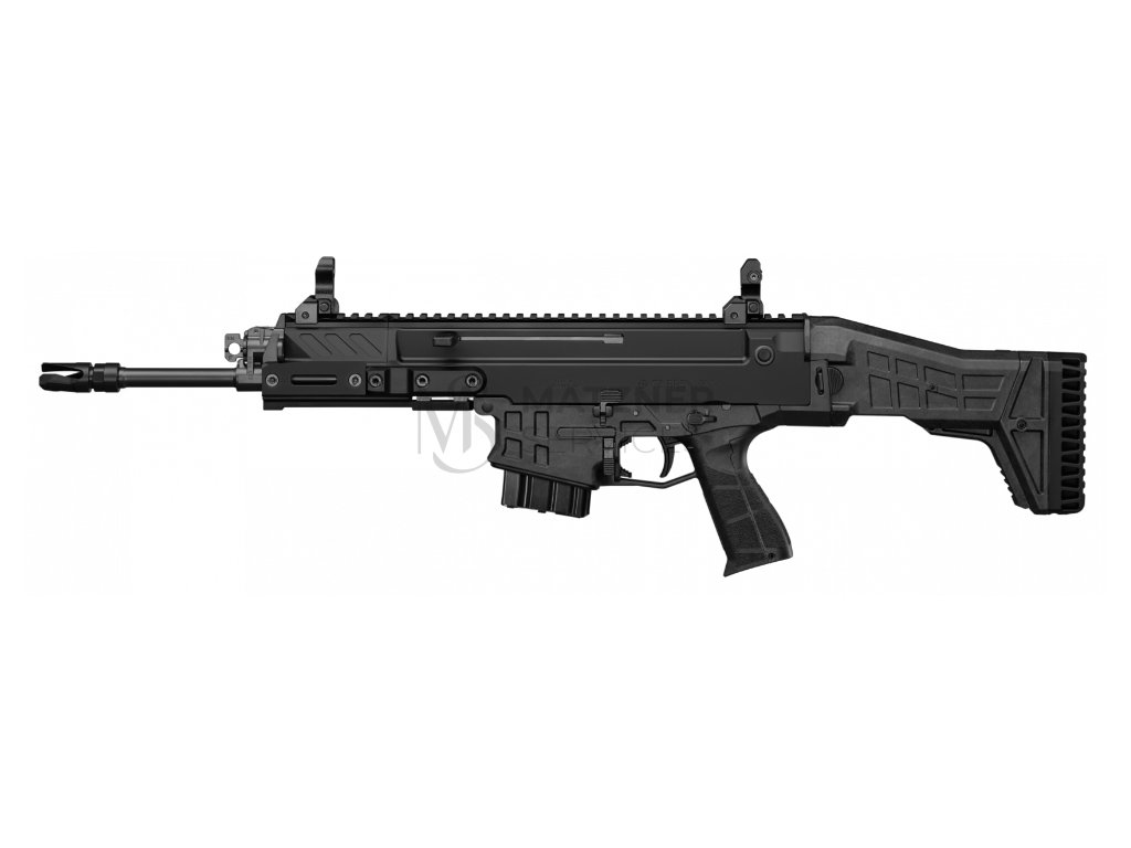 - Sklopná, výsuvná ramenní opěra z vysoce odolného polymeru je délkově nastavitelná a umožňuje zvolit optimální střeleckou polohu v závislosti na tělesné konstituci nebo taktické výbavě, spoušť je pohodlně přístupná i při sklopené pažbě.