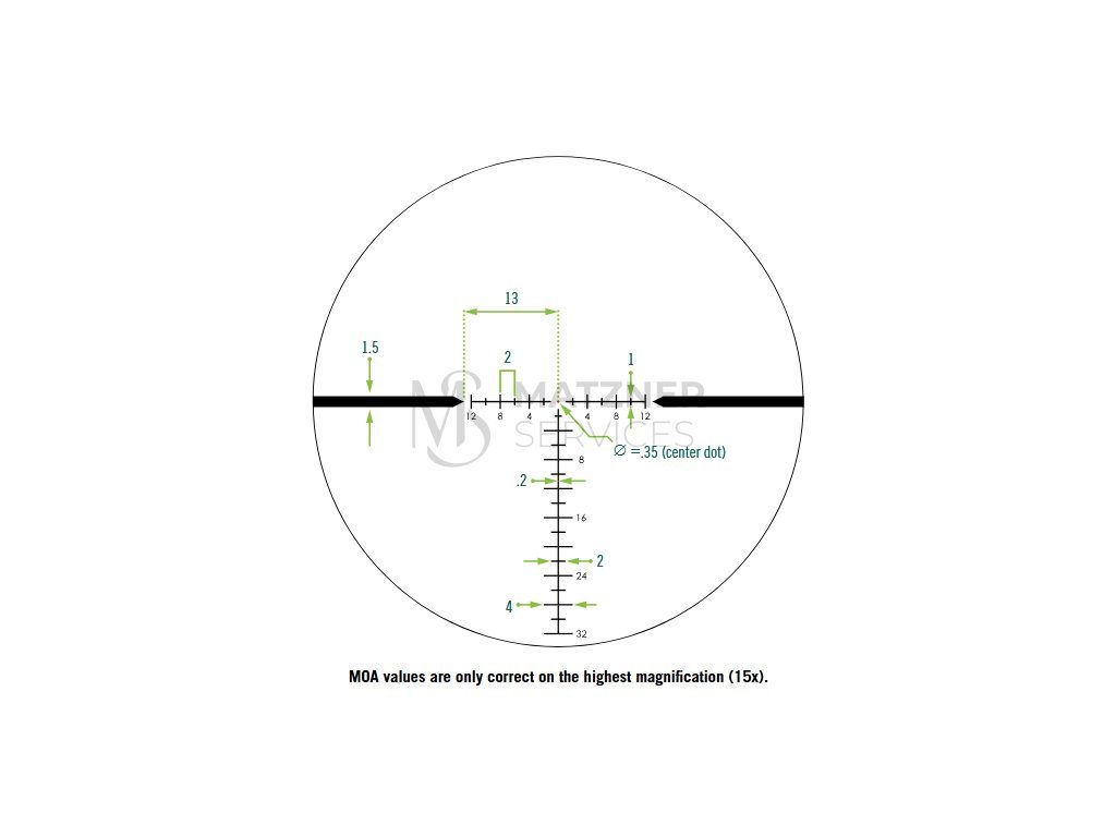 Rozsah korekce ve vertikální ose: 80 MOA